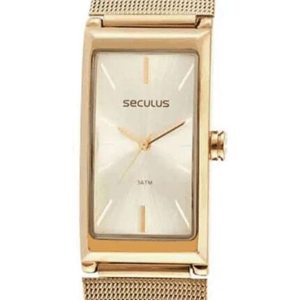 Relógio Seculus Feminino Retangular Dourado – 77144LPSVDS1