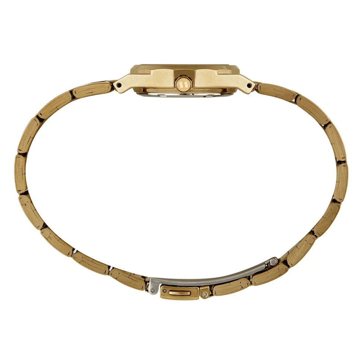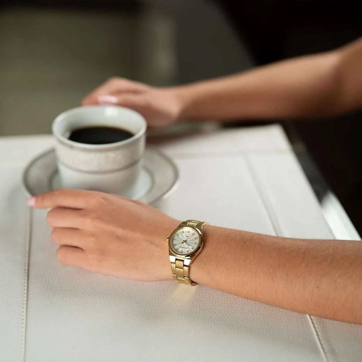 Este relógio analógico dourado combina delicadeza e sofisticação em um design compacto e elegante. Sua caixa facetada de 2,8 cm de diâmetro proporciona um ajuste perfeito ao pulso, garantindo conforto e leveza. O mostrador texturizado, realçado por marcações em cristais, adiciona um toque de brilho e requinte ao visual. A pulseira refinada conta com um fecho de acionamento lateral, oferecendo praticidade e ajuste seguro. Ideal para quem busca um acessório discreto, sofisticado e versátil para compor qualquer look com charme e elegância.