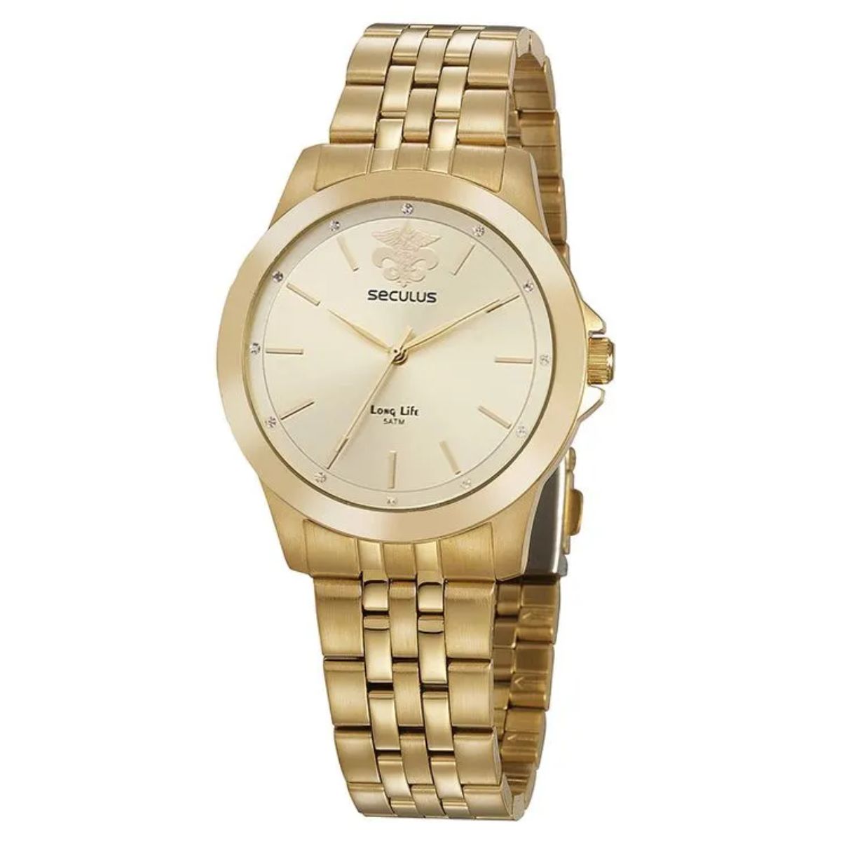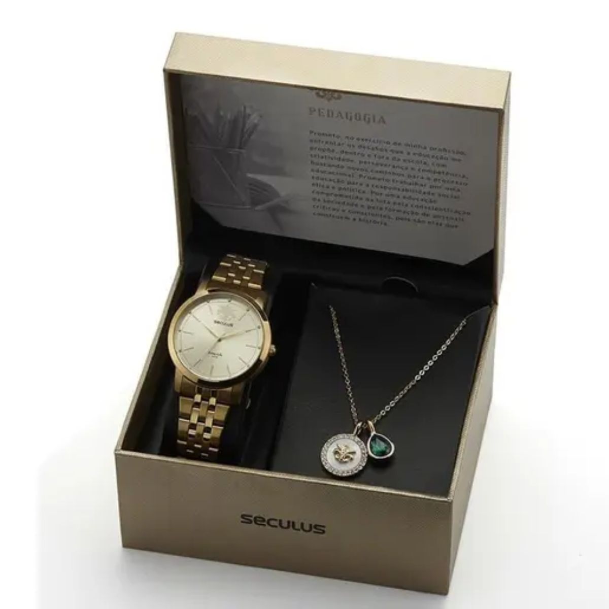 Relógio Seculus Kit Feminino Pedagogia Dourado
